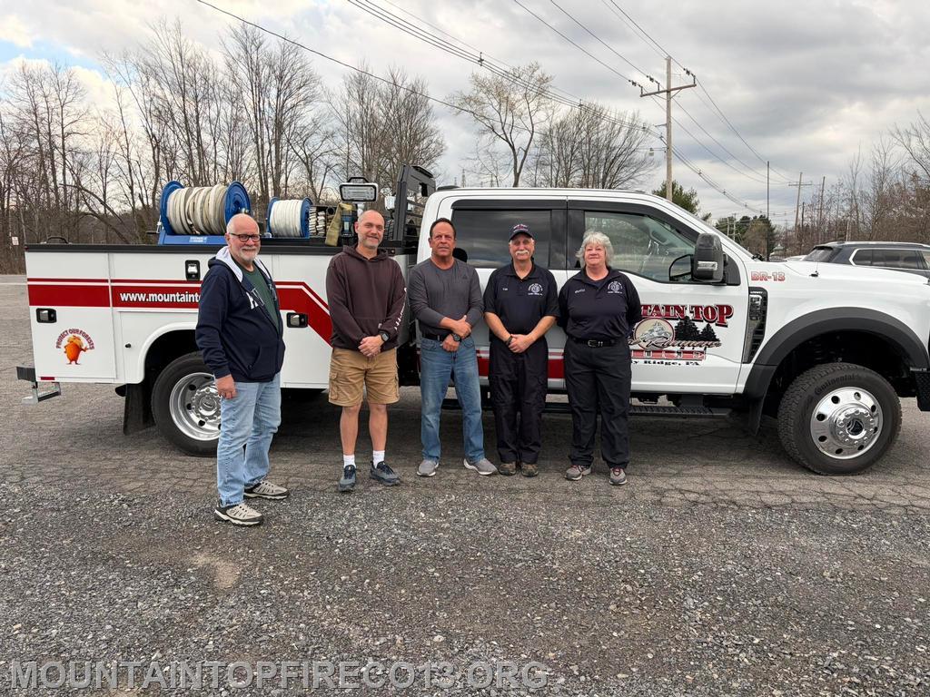 The Mountain Top Fire Co attended the Rush Township meeting this afternoon to thank the Supervisors for their support and assistance with the Local Share Account (LSA) municipal grant used to purchase the new brush unit. Pictured L-R are Supervisors Dave Jackson, Jason Vaux and Pat Romano, Chief Tim Sharpless and Assistant EMS Chief Shelly Tormey.